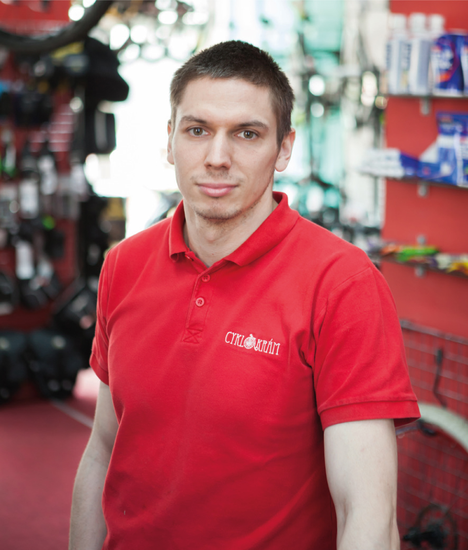 Cyklistika je mým velkým koníčkem. Přestože jsem studoval stavařinu, vidina toho, že budu dělat, co mě baví, byla úžasná. Nejdříve jsem pracoval jako prodavač v cykloobchodu přibližně dva roky, ale moc mě to nebavilo. Tak jsem se rozhodl zkusit to na vlastní triko a rozjet si obchod sám. Přesně si pamatuji den, kdy jsem otevíral – 1. 11. 2011. Nejdřív jsem zkoušel sdílet prostory s jiným podnikatelem, to mi ale nevyho-vovalo, protože chápu podnikání jinak. Když mi přijde po zavíračce zákazník a potřebuje prodat duši, obchod ode-mknu a duši prodám, aby mohl odjet domů. V tomto jsme se neshodli.