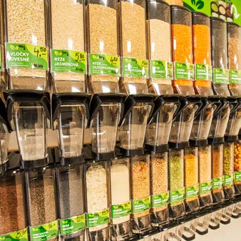 Podobný způsob nákupu považujeme za standard, proto jej umožňujeme v každé prodejně. Nechybí ani v naší zatím posledně otevřené pobočce v Porubě. Nabízíme tu zhruba 60 komodit bez obalu. Hlavní benefity takového nákupu vidím dva: eliminace odpadu a cena. Sáček od rýže, čočky, pohanky nebo bulguru v koši se možná zdá zanedbatelný, ale schválně – zkuste to bez obalu a uvidíte, kolik odpadu ubude! Pokud by vám tohle jako motivace nestačilo, pak je tu ještě rovina financí. V dnešní době se přece hodí každá koruna!